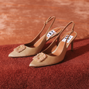 What a beautiful shoe. I bought true to size and they are so comfortable! The taupe color goes with everything!”